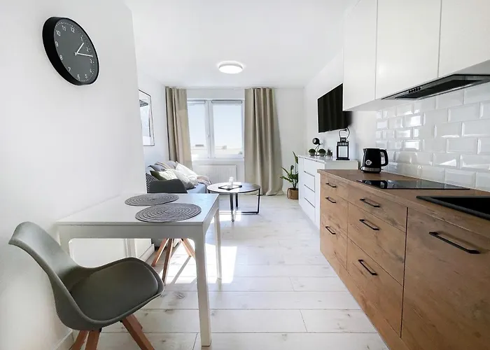 Outre une cafetière/théière, les équipements indépendants de la cuisine comprennent un réfrigérateur et de la verrerie. L'aéroport Lech Wałęsa de Gdańsk est à une distance de 25 minutes en voiture, et l'arrêt de bus PCK est à une distance de marche de l'appartement.
